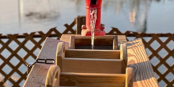 We use a gem mining sluice: a long, flowing water trough where you'll wash away dirt to reveal hidden treasures. Here's how it works: